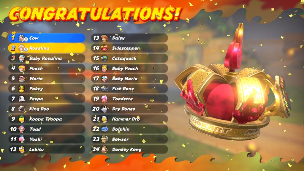 Mario Kart World is an open-world kart racing game. As the name implies, it features Super Mario and all of his friends, enemies, Princess Peach, and a few other random but funny characters, such as Cow (yes, really).